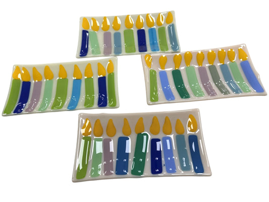 Fused Glass Menorah Tray
