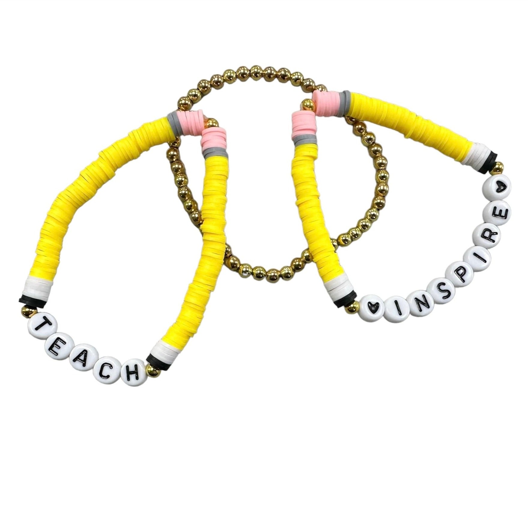 Show the teacher in your life how much you appreciate their hard work with this 3 piece handmade bracelet. Prefect for end of the year gift.